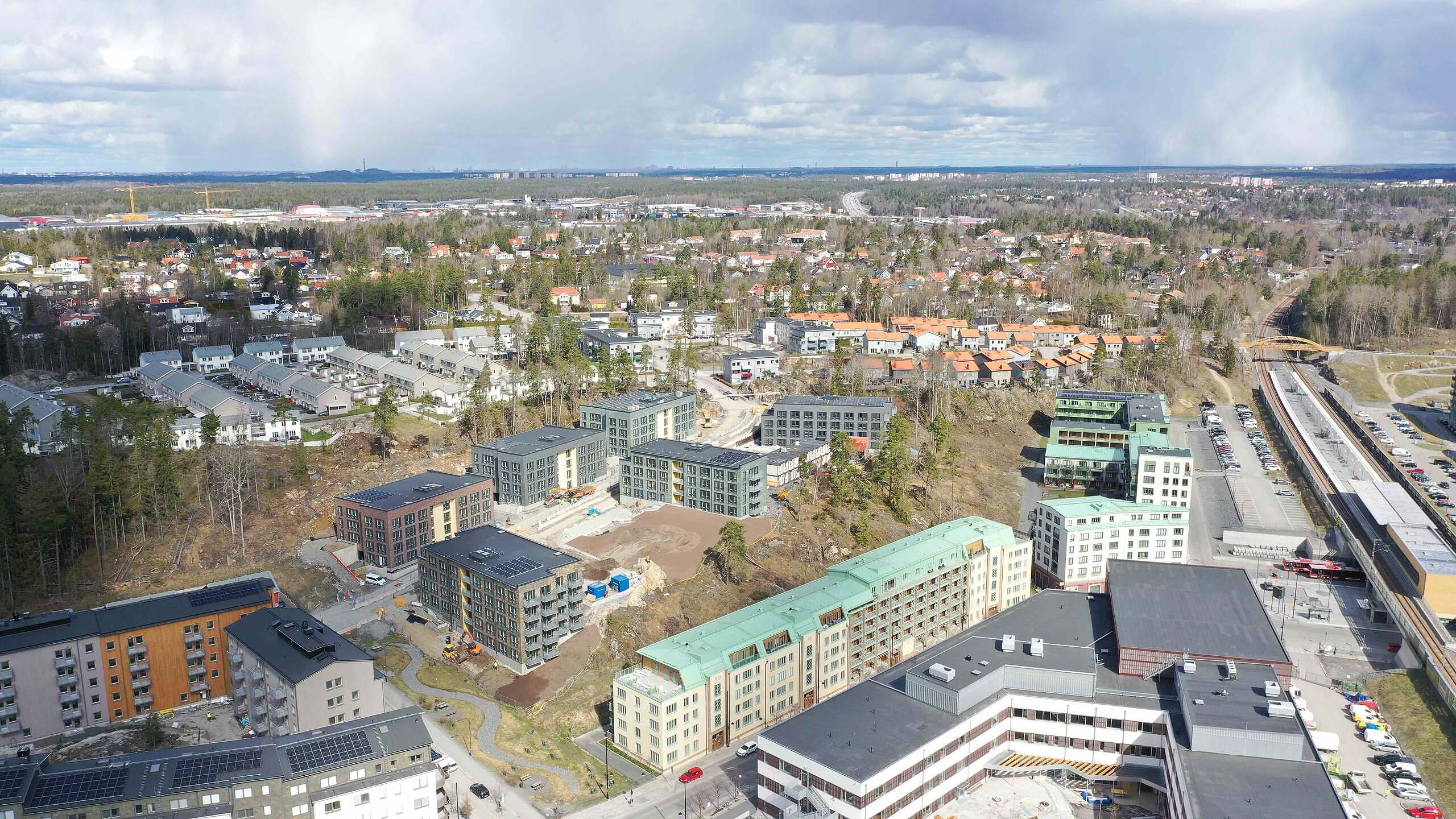 Den nya pendeltågsstationen öppnade våren 2019 och innebar att Vega omedelbart kom närmare resten av Stockholm – så nära att det lägger grunden för ett helt nytt distrikt, som blir Haninges nya mittpunkt. Inom gångavstånd från Vega ligger Port 73, som öppnade 2010 med 40 butiker och restauranger. Inom 10 minuters cykeltur finns Haninge Centrum, med en mängd butiker- och restauranger, apotek, banker och andra tjänster.